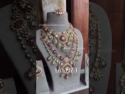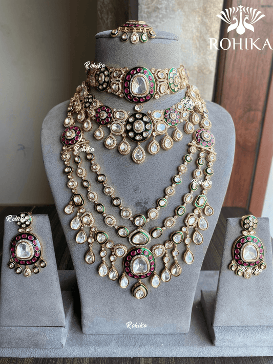 Arshia Moisanite Polki Bridal Combo Set - Green and pink