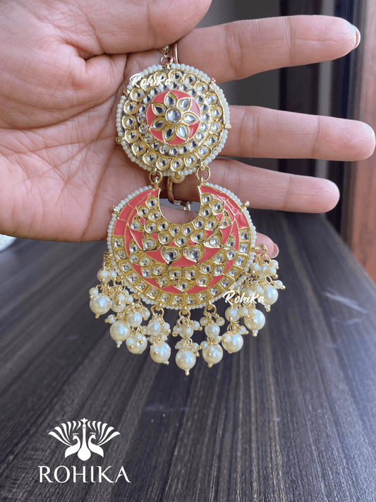 Tisha earrings and maangtikka combo - Peach