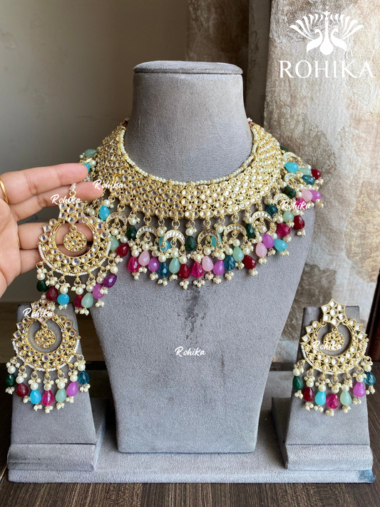 Aarzoo Dabi Kundan bridal necklace set - Multi