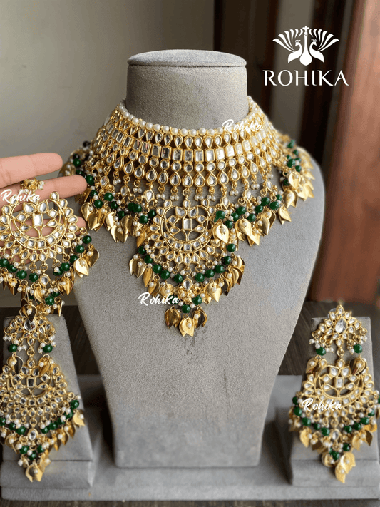Simran peepal patti kundan necklace set - Dark green