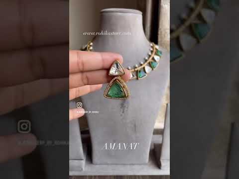 Amanat polki kundan necklace set - Mint green
