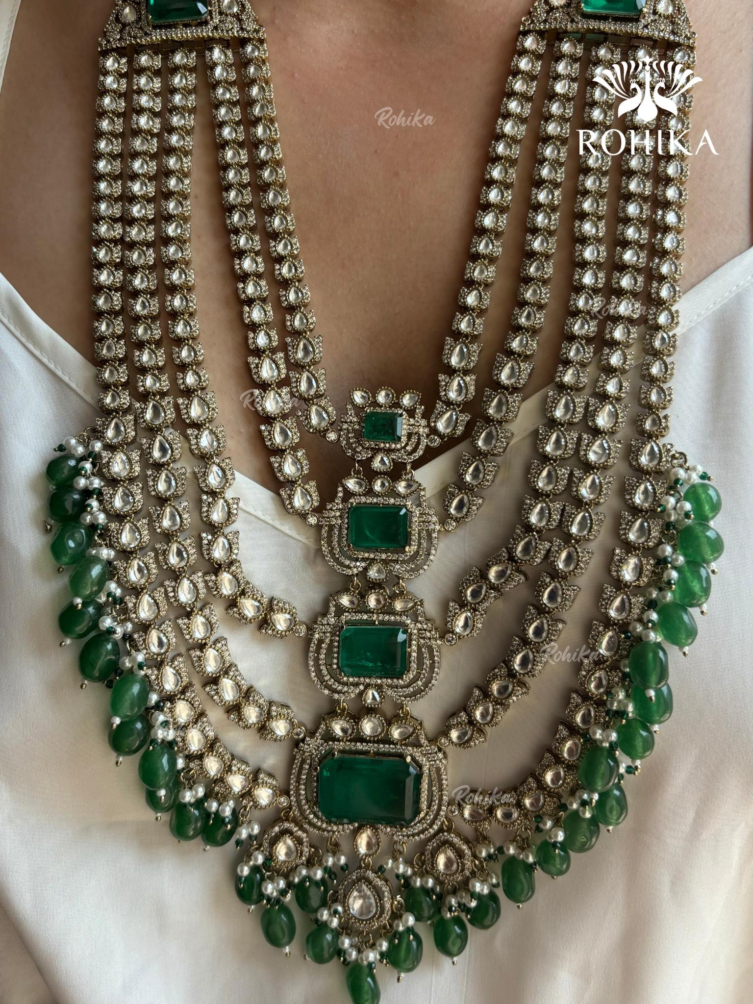 Alani Polki Kundan Long Bridal Necklace Set - Dark Green